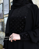 ترکیب رنگ تمام مشکی همیشه استایلی پر کاربرد را برای شما میسازد. عبای زیبای "حنانه مخمل" یکی از عباهای زیبای نجماست که با پارچه حریر اسود و خرجکار مخمل سوزن دوزی و با برش خاصش؛ شیک و زیبا شده این عبا بحرینی است و حالت پانچ و کیمونو داره و در ۳ سری سايز فری و در ۳ سری قد تولید شده ؛ مچ این کار دکمه داره و برای وضو به راحتی بالا میره و این عبا نیز مانند بسیاری از عباهای نجما از داخل بند تنظیم سایز دارد.